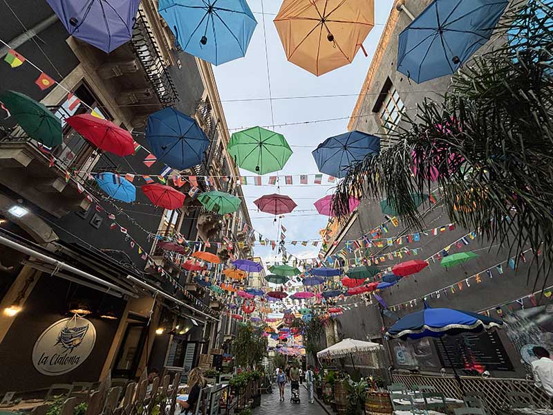 Immerso nei vicoli storici della Zona Pescheria di Catania, dove gli ombrellini colorati danzano sopra le teste dei passanti e il profumo del mare si mescola alle voci del mercato, La Cialoma è più di un ristorante: è un’esperienza sensoriale, un omaggio alla cucina siciliana di mare, autentica e raffinata.